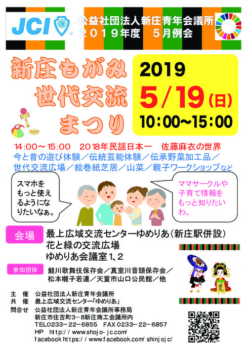 2019年5月19日(日)10:00~15:00   5月例会新庄もがみ世代交流まつり