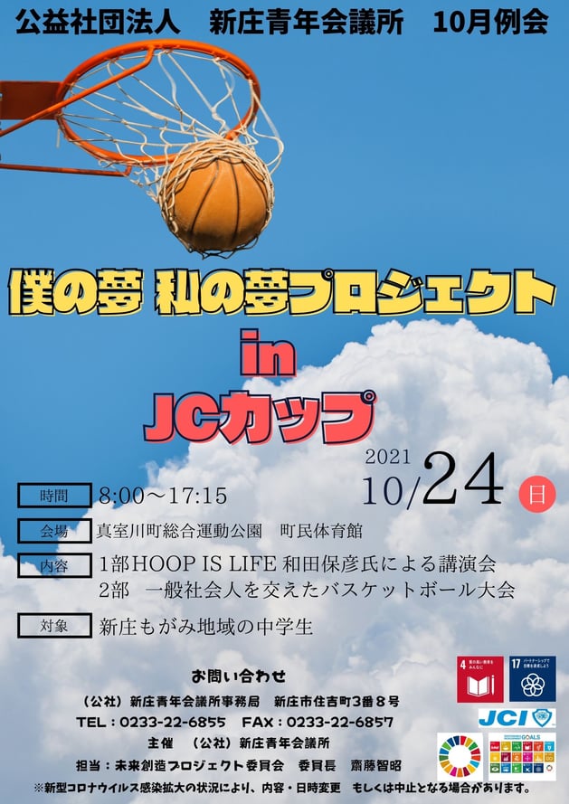 2021年10月24日(日)、青少年育成事業として「10月例会 僕の夢 私の夢プロジェクトinJCカップ」を開催致します。