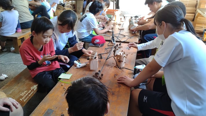 当日は天候にも恵まれ、参加して頂いた小学生・高校生がハイキング&木こり体験、拾った木の枝で笛づくり&Wi-fiオブジェ制作、森の中の拠点作り・火起こし体験といった、自然に触れる様々な活動を生き生きと楽しむ姿が見られました。また、体験した内容をSNS等で投稿することで、地域の魅力を自ら発信するということにも取り組んで頂きました。